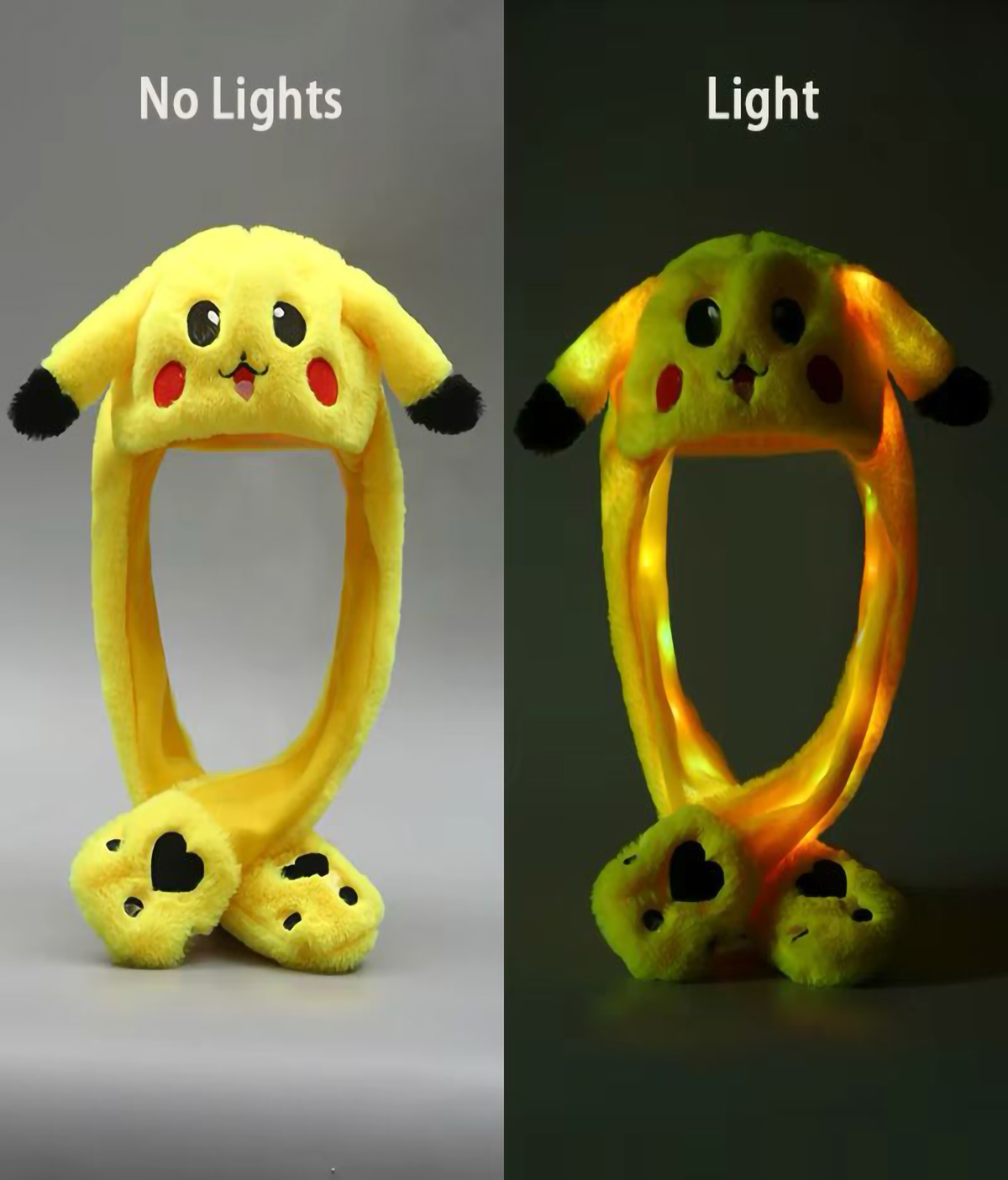 Pokemon Pikachu Hat Lighting & Moving Ears Plush Cosy Warp Winter Beanie For Kids & Adults